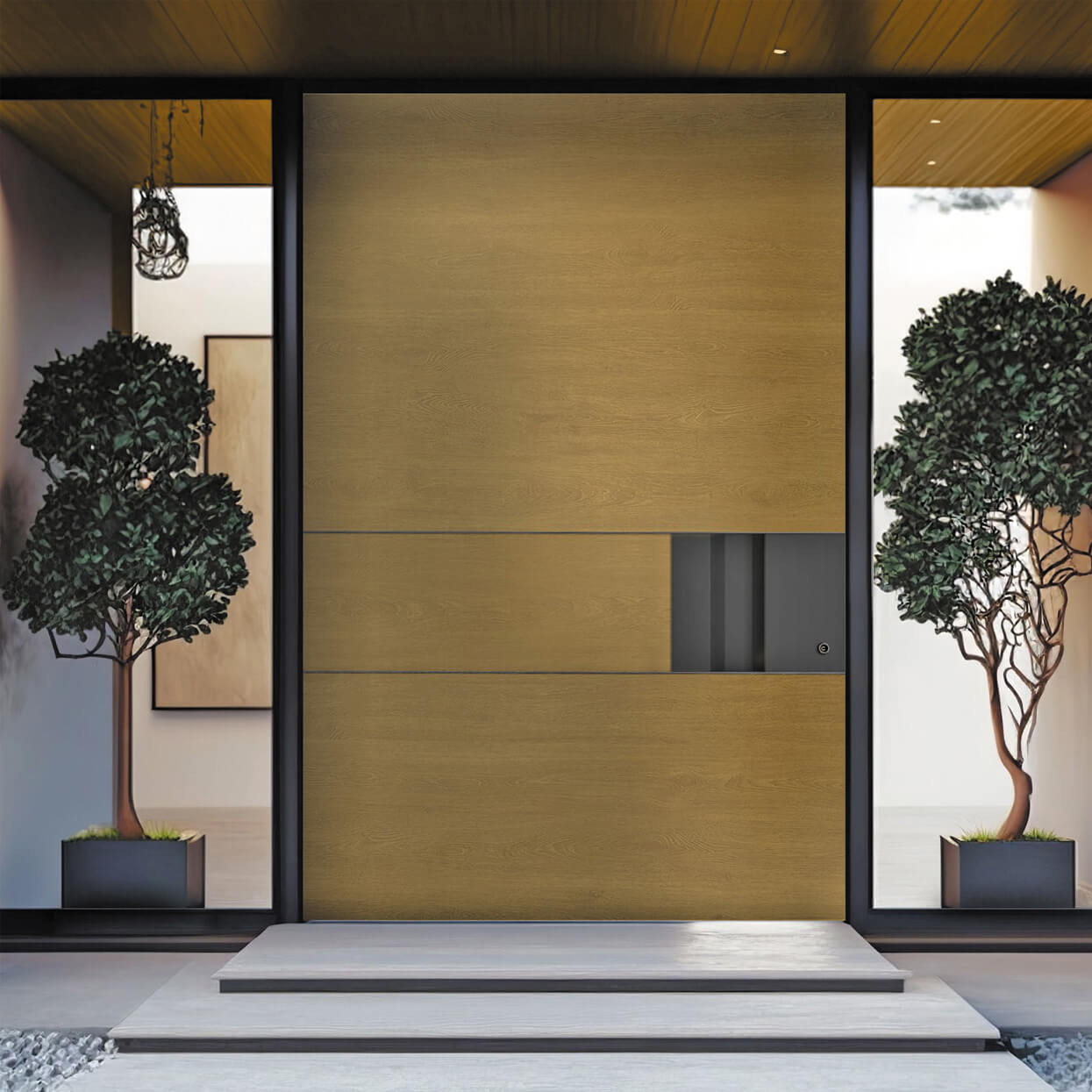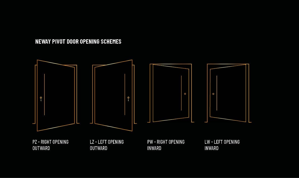 Usually, Neway pivot doors are crafted to be larger and weightier compared to standard hinged doors. Their considerable size and expansive panels create a striking visual impression.