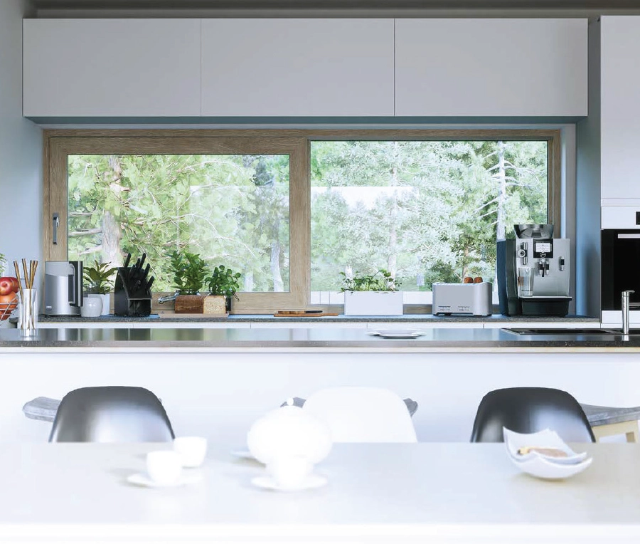 From both the exterior and interior perspectives, slim and clean shapes are achieved, thanks to a new range of glazing beads featuring straight contours.